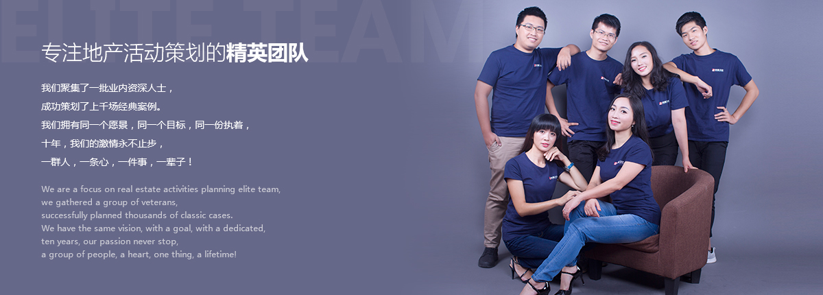 自創建以來,我們一直致力將時尚、創新理念融入整個公司的戰略部署與發展規劃中去,整合各界優質資源,將時尚理念與服務意識相結合,以強大的優質資源為依托、以專業策劃團隊和高水準管理為基礎,為地產客戶提供最有效的、不可替代的營銷服務,幫助地產客戶在日益激烈的市場中提升經濟效益和社會效益。