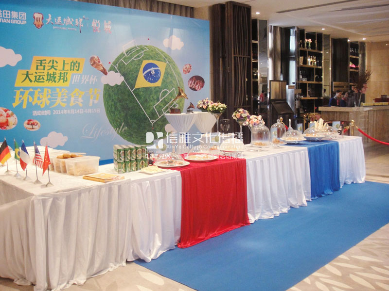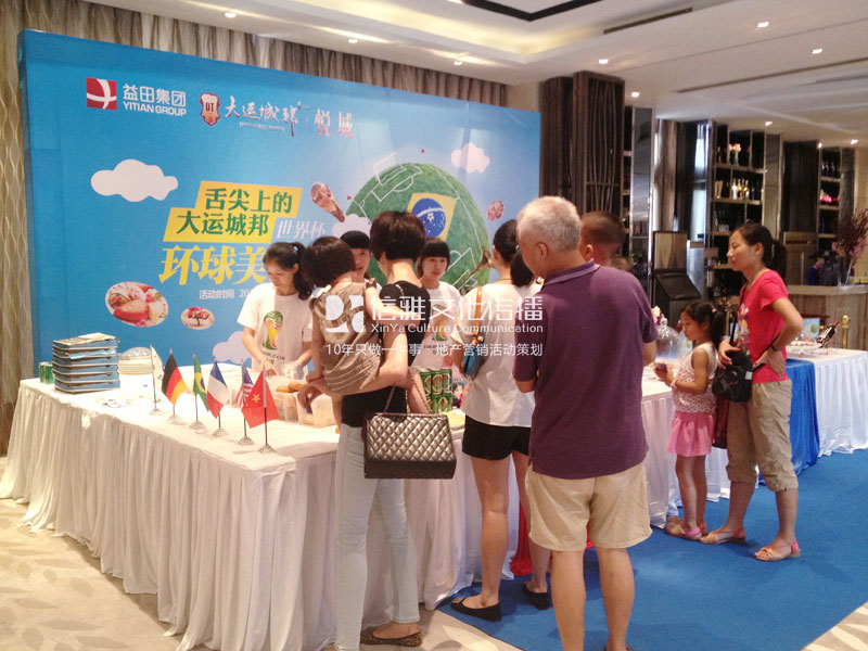 為期兩天的高溫布場,信雅文化的工作人員們再一次戰勝了酷暑的艱難考驗!精致的現場布置,專業演藝人員互動環節與異域風情的美食在益田大運城邦四期銷售中心成功舉辦,營銷中心前廣場打造了以巴西燒烤為最大賣點的美食小攤,活動當天特備法國糕點、德國黑啤、德國香腸、韓國泡菜、意大利披薩、東南亞水果、巴西燒烤等全球美食供應品嘗,讓您不出遠門即可品嘗世界美食!同時營銷中心內場設置了體感游戲區和足球巧設區以及環球美食品嘗區,現場還有定時免費大抽獎,獎品豐富,熱鬧非凡!客戶可以一邊看世界杯比賽一邊吃巴西燒烤美食;