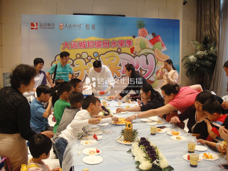 周末暖場均以親子為主打內容,信雅文化團隊為大運城邦精心組織與策劃了一場親子水果DIY活動,兩天營銷中心吸引了逾百人參加,現場氣氛火爆。希望通過親子暖場活動吸引孩子關注,從而帶動家長的參與,通過家長兒童的互動行為,帶動現場銷售。在稍嫌酷熱的四月,不少業主贊嘆工作人員很貼心,在炎熱的夏日為她們帶來了一絲清涼?;顒蝇F場,眾多業主與客戶紛紛參與到水果diy活動中去,在水果雕刻師傅的認真指導下,很多小朋友與家長一起投入水果雕刻的藝術中去,1小時過去,大家手中原有的蘋果、香蕉等變成了一件件精美的藝術作品?;顒咏Y束時,還有不少業主意猶未盡,希望大運城邦以后能多次舉辦此類活動。咨詢電話:0755-83928949